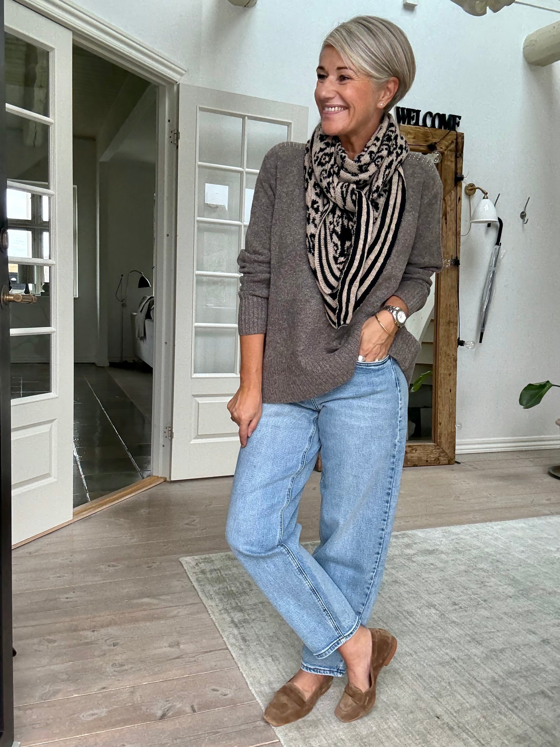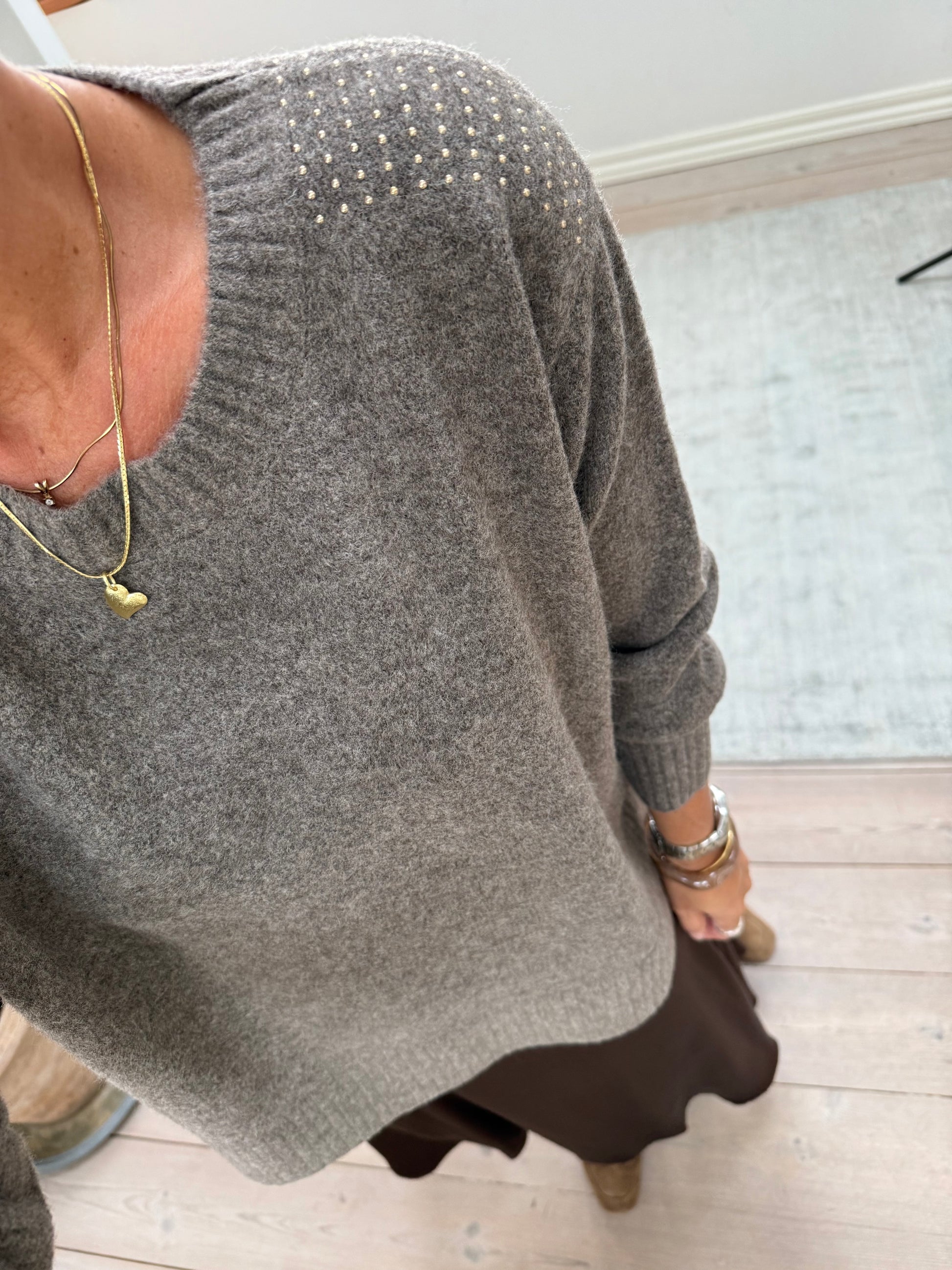 Babara Knit er en skøn strik med lange ærmer og fine små guldnitter på skulderne.