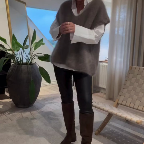 Cool strikket vest fra Black Colour. Fås i den populære Coffee og den fineste Coral farve.