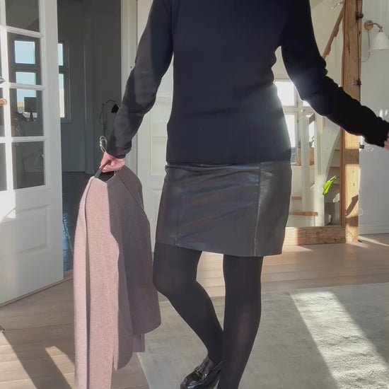 Fintstrikket pullover i den lækreste blødeste kvalitet af cashmere og merino uld. Pulloveren har små slidser i begge sider og rund halsudskæring. Smal ribkant i halsen, for enden af ærmerne og forneden.