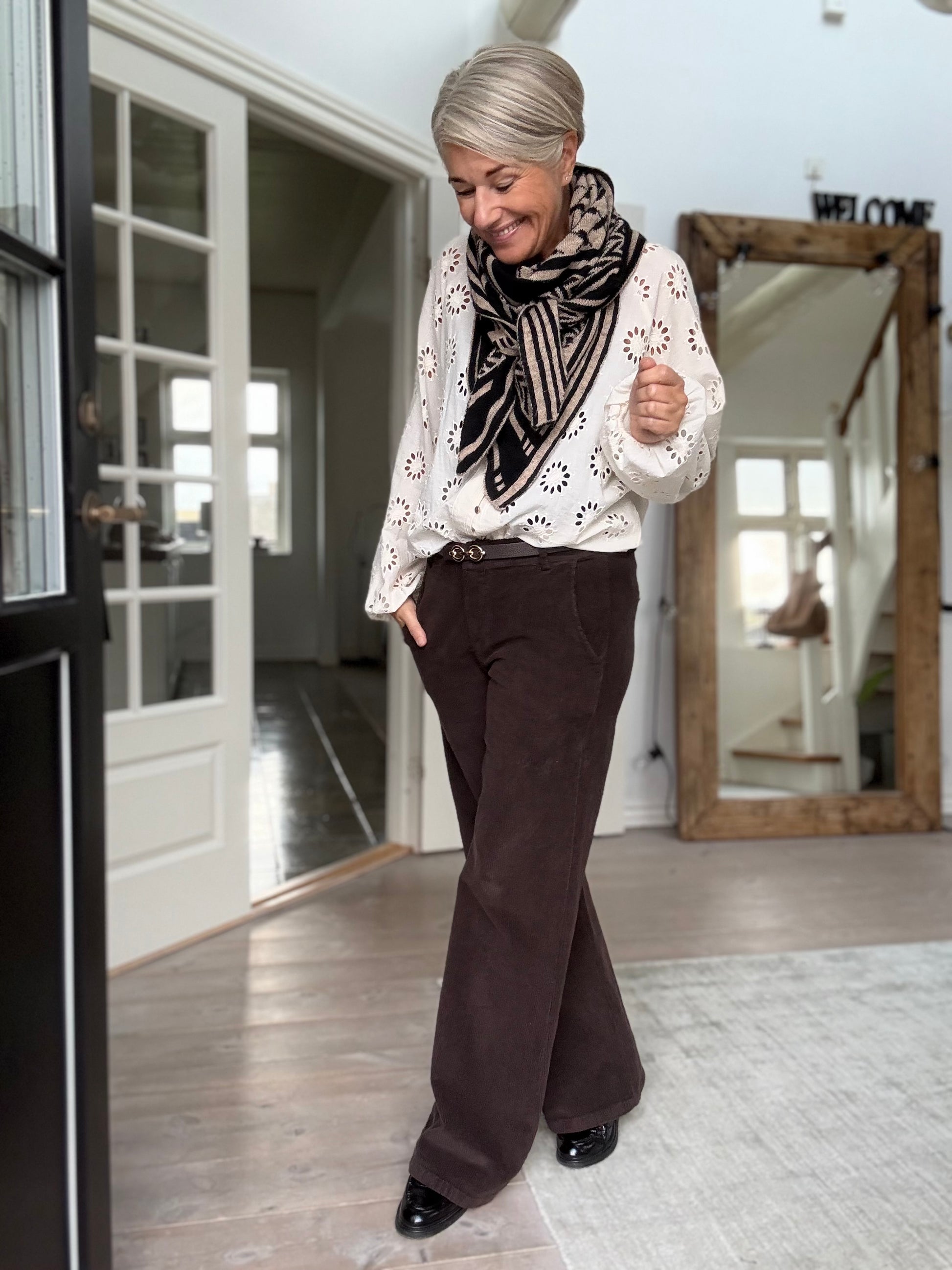 Bred buks med læg foran. Den har elastik bagtil i linningen.