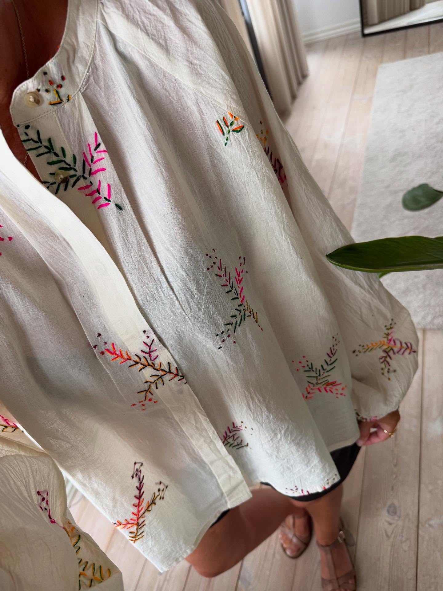 HaileyLL skjorten er en feminin og farverig style med fine detaljer. Den er designet i en let og blød bomuld med et broderet mønster i varme nuancer, der skaber et håndlavet og eksklusivt udtryk. Skjorten har en løs pasform med bløde læg, som giver en smuk silhuet og et afslappet fald.
