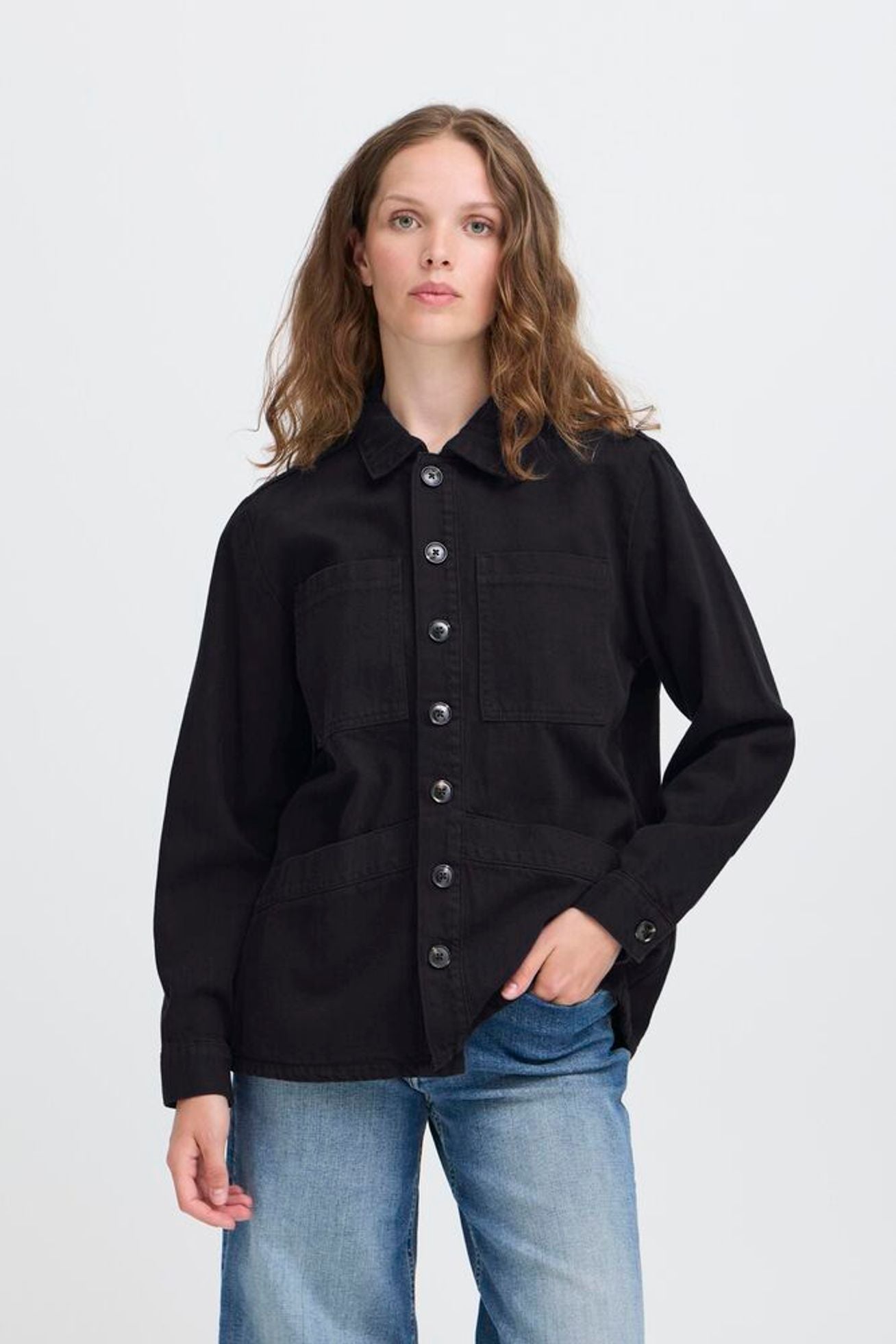 Fin jakke fra ICHI med lommer og knapper hele vejen igennem.