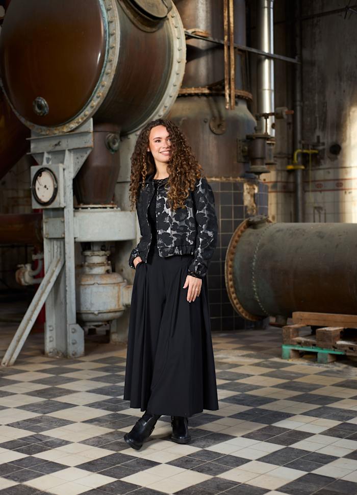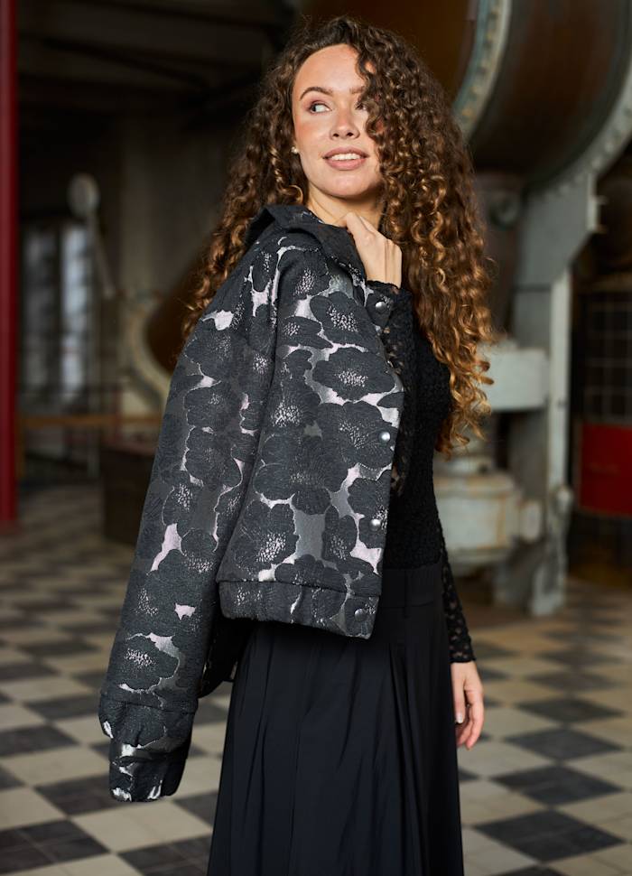 Jacquard bomber jakke i et metallisk look.