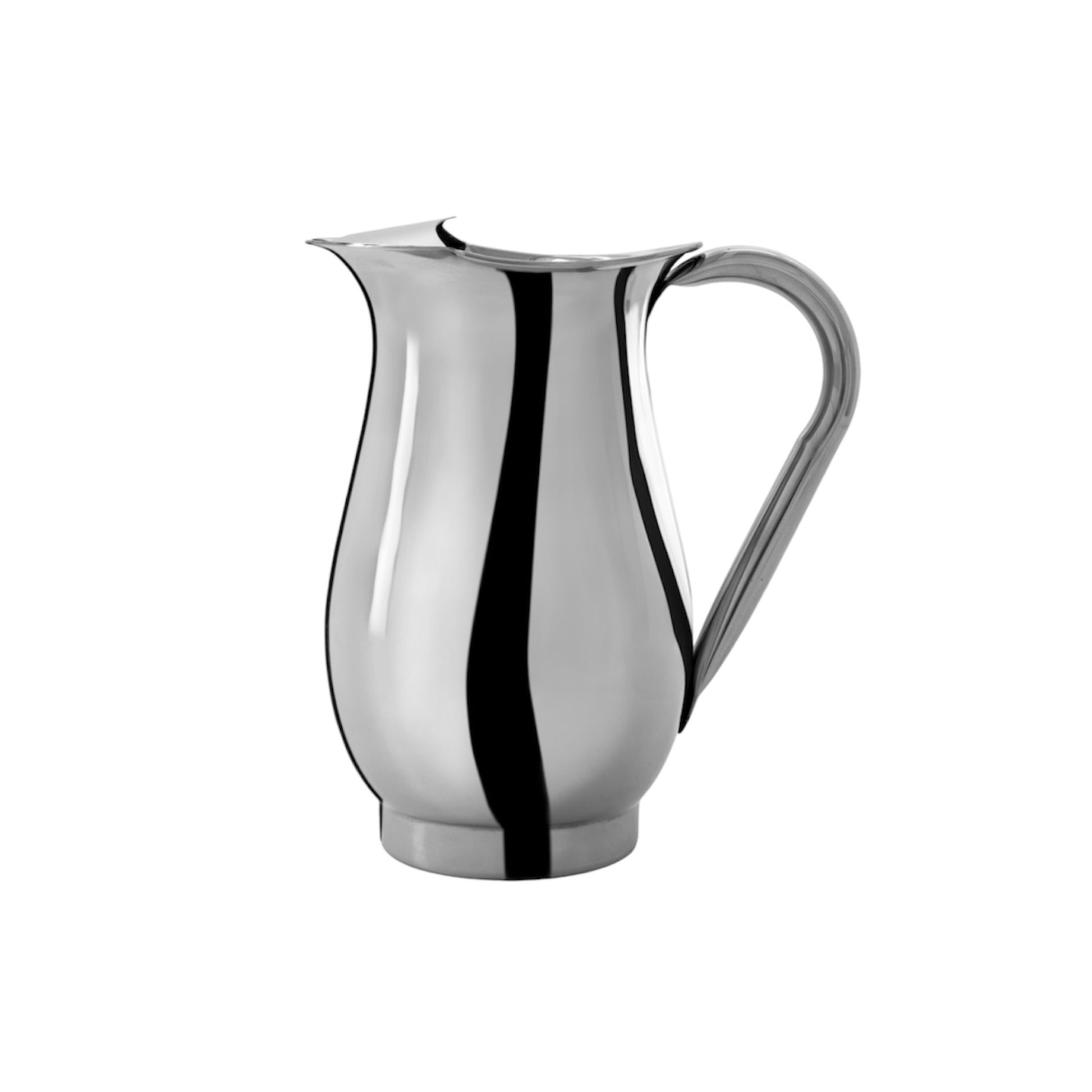 Med denne håndlavede kande i rustfrit stål med sølvfinish giver du borddækningen både funktionalitet og elegance. Den klassiske, let afrundede form og den markante hank skaber et raffineret udtryk, uanset om du serverer vand til frokosten eller lækker limonade til sommerens fest. Den spejlblanke overflade indfanger lyset smukt og gør kanden til et iøjnefaldende element i både køkken og spisestue. Brug kanden som kontrast til keramik og glas, eller lad dens tidløse design være det gennemgående på bordet.
