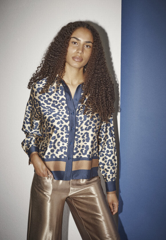 love1393 er en skjorte med et iøjnefaldende print. skjorten har en klassisk krave, knaplukning ned langs fronten og lange ærmer med manchetter.