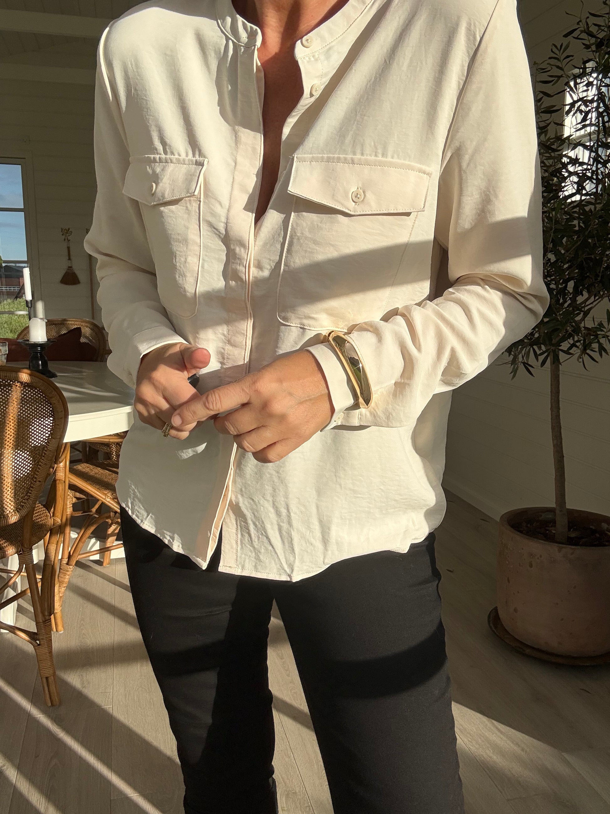 Fin og enkel skjorte med lommer på brystet fra ICHI.