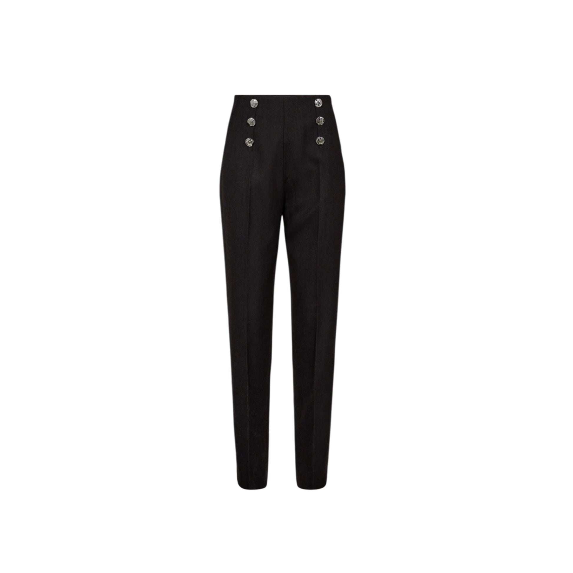 CMTAILOR-PANTS er et par højtaljede bukser i en eksklusiv kvalitet med sildebensmønster, skjult lynlåslukning i siden, en høj talje, en regulær pasform, lige bukseben med pressefolder samt dekorative, organiske knapper på fronten, der giver bukserne et maritimt udtryk.